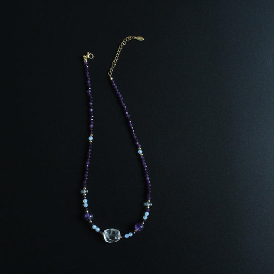 White Crystal Purple Crystal Necklace|Natural Crystal Healing Jewelry|February Birthstone Gift|Layered Gemstone Necklace|Gift for Her