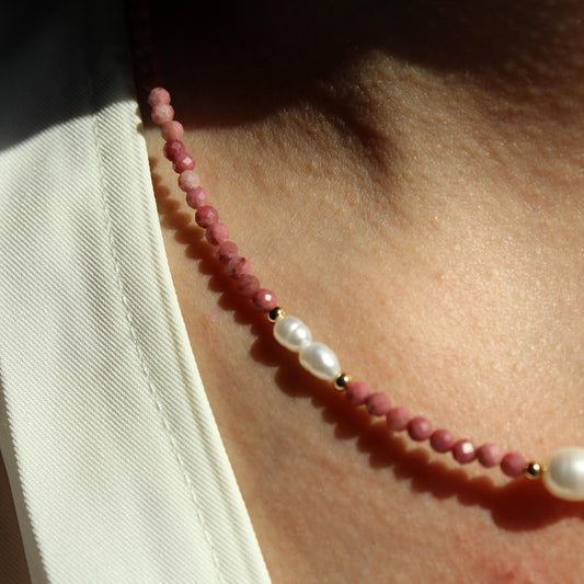 Red Jasper Pearl Necklace|Natural Gemstone Jewelry|Earth Energy & Feminine Elegance|Healing Gift for Her|Boho Crystal Necklace